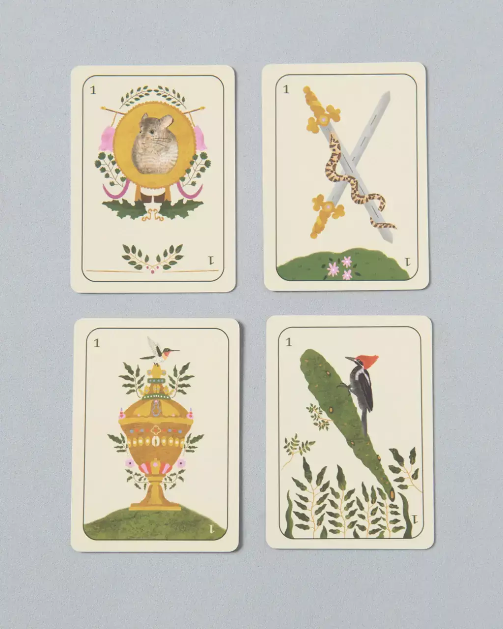 Cada caja contiene: 1 mazo de 50 naipes ilustrados.